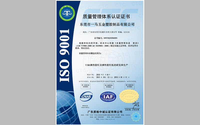 ISO質(zhì)量體系認證-一馬膠針及膠釘機生產(chǎn)過程